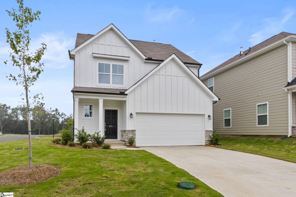 Brand New Construction! This 4-bedroom, 3.5-bath home offers spacious, modern living across three thoughtfully designed levels. A defined foyer welcomes you into an open-concept layout that includes a large kitchen, dining area, and great room—ideal for both daily living and entertaining. The kitchen features quartz countertops, stainless steel appliances, a designer backsplash, LED disc lighting, and pendant lights over the island. Step outside to enjoy a covered porch and extended patio for seamless indoor-outdoor living. The yard will be sodded for added convivence. Upstairs, the second level includes a generous loft, laundry room, two secondary bedrooms, a full hall bath, and a spacious primary suite complete with a tiled walk-in shower, garden tub, dual sinks, and tile flooring. The third floor offers a private bedroom and full bath—an excellent option for flexible living space. Additional upgrades include enhanced lighting, trim, and plumbing packages, structured wiring, and a built-in pest control system. The finished garage is drywalled, painted, and equipped with lighting and outlets.