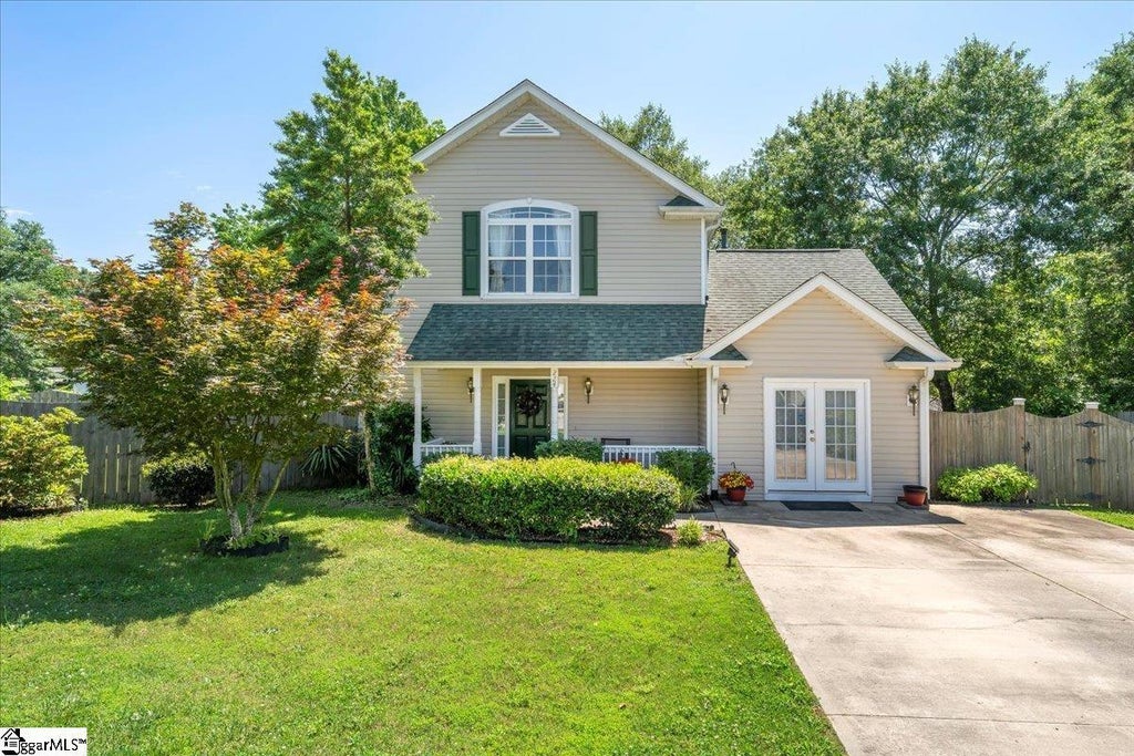 New and improved pricing! Work remote and need a private home office? Great find in Taylors that allows for multi-generational living with no HOA! This 2-story home with simple elegance and beautiful architectural details throughout is tucked away at the end of a quiet residential street. The first floor includes a spacious living room with gas fireplace and powder room, a glistening kitchen with oak cabinets, closet pantry, and dining area with 9’ ceilings, laundry room with ceramic tile, and a complete guest room/bath with private entrance, cultured marble vanity top, walk-in shower and toilet with grab bars. The wood staircase with oak railings ushers you upstairs to a double-door entry master suite with vaulted ceiling, ceiling fan/light fixture, decorator window with transom, double walk-in closets, and full bath. Also upstairs are two additional bedrooms with standard closets, ceiling light/fans and a full hall bath. The house has gas heat and gas water heater, and central air with both upstairs and downstairs thermostats in addition to a mini-split. The palpably serene back and side yard is fully enclosed with a six-foot privacy fence, includes a lovely patio, and holds a 12x10 foot storage shed. Nearby are parks and a shopping centers with grocery stores (Food Lion, Harris Teeter), restaurants, Ace Hardware as well as the Taylors YMCA that is ½ mile away. The home is only minutes from Brushy Creek Elementary and Eastside High School.