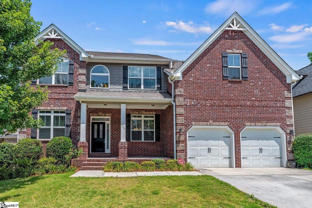 A prime location on Greenville's Eastside, close proximity to award-winning Riverside schools, a spacious and versatile floorplan... 330 Mansfield Ln has it all! Set on a premium cul-de-sac lot that backs to woods, this stately traditional greets you with a sturdy brick front, gable accents, carriage-style Garage doors, and a rocking chair covered porch. Mature plantings supported by full-site irrigation keep curb appeal year round. Inside, neutral decor and rich hardwoods welcome you into the gorgeous two-story Foyer that's styled with crown molding, wainscoting, and a display niche by the upper window. Arched entryways to the Dining Room add elegance, along with additional wainscoting and a fabulous coffered ceiling. Across the Foyer is an Office/ Study where you can work privately behind double French doors. A lovely stone hearth gas fireplace is the focal point of the open Family Room and the second coffered ceiling there exhibits sophistication. Abundant dark hued cabinetry, complimenting granite counters, and a full bank of appliances - including a gas range and wall ovens - create a highly functional and aesthetic center-island Kitchen. Adjoining is a casual Breakfast Area that's just as pretty as the formal Dining. Opposite the Family Room, you will love the main level Guest/ In-Law Bedroom with private access to the Hall Bath. The second floor is your family's private oasis! Atop the landing, you will discover a huge Bonus with a vaulted ceiling that adds to the spaciousness. Tucked down the Hall is your large Owner's Suite styled with soft carpet, chair rail molding, and a vaulted ceiling of its own. The Owner's tiled Bath is exceptional with an extended dual sink vanity, garden soak tub, separate shower, and room sized walk-in closet! Three more Bedrooms, all with great closets and vaulted ceiling, are also upstairs. Two share a Jack 'n Jill style Bath while the third has a private en suite Bath. Conveniently, the Laundry is found nearby. The walk-out terrace level of the home is unfinished, yet has studs, plumbing, and electrical in place so you can easily tap into this home's potential! Expanding you activities outdoors will be a favorite pastime on the open and covered Deck or the breezy Patio beneath. The level yard is conducive for the addition of a firepit or raised garden. Being less than ten minutes to charming downtown Greer means parks, events, and eateries will keep your family engaged. Additionally this location central to Greenville and Spartanburg creates abundant possibilities for your career and adventure. Call now to begin the transition to your forever home!