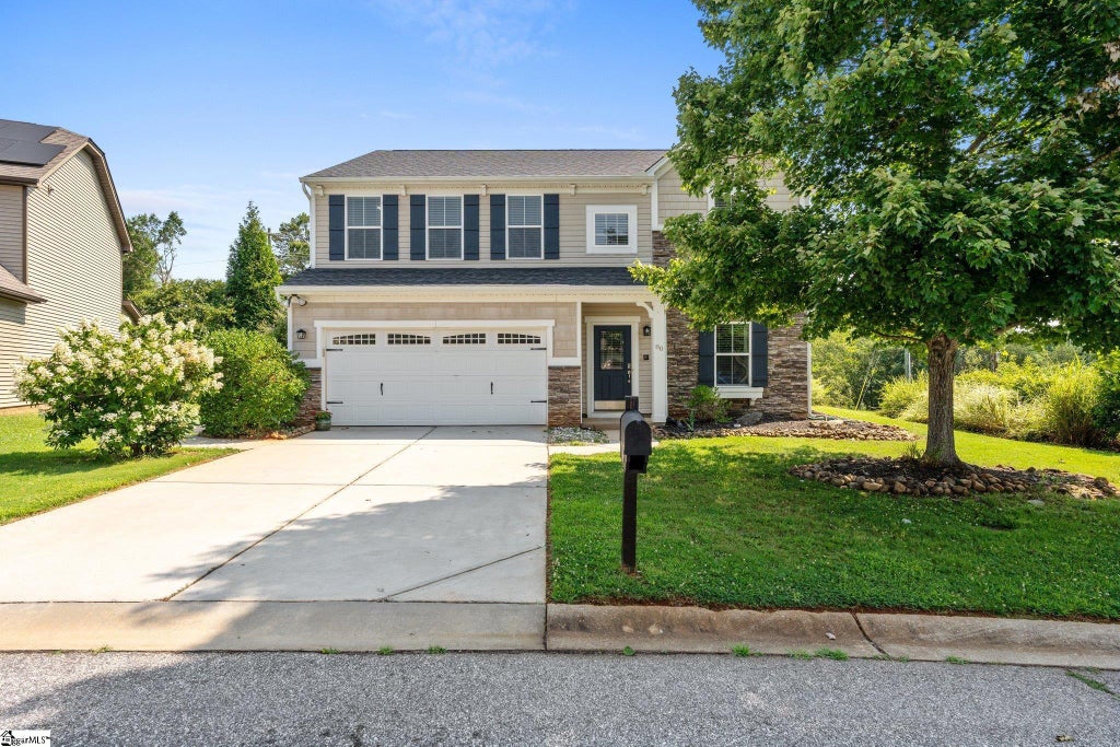 Welcome to 80 Madeline Circle, a beautifully upgraded former model home located in the highly sought-after Pebble Creek Village community. This 4-bedroom, 2.5-bath home offers an open floor plan filled with natural light and stylish wood laminate flooring throughout—no carpet! The main level features a formal dining room along with a spacious great room with a that flows seamlessly into a stunning kitchen complete with granite countertops, under-cabinet lighting, designer tile backsplash, ample cabinetry, and a pantry. The bright sunroom opens to a fully fenced backyard and patio—perfect for entertaining. A convenient drop zone leads to the oversized 2-car garage, which includes its own thermostat, recessed lighting, crown molding, epoxy floors, and yard access, making it ideal as a gym, office, or flex space. Upstairs, the expansive primary suite provides a relaxing retreat, with three additional bedrooms and another full bath offering plenty of space for family or guests. Located just 20 minutes from downtown Greenville, 15 minutes from Travelers Rest and the Swamp Rabbit Trail, and 5 minutes from Wade Hampton Blvd, this home also offers optional membership to the Pebble Creek Golf Course and Swim Club. Move-in ready and full of modern upgrades, this is a rare opportunity you won’t want to miss! Refrigerator & Washer & Dryer do not convey!