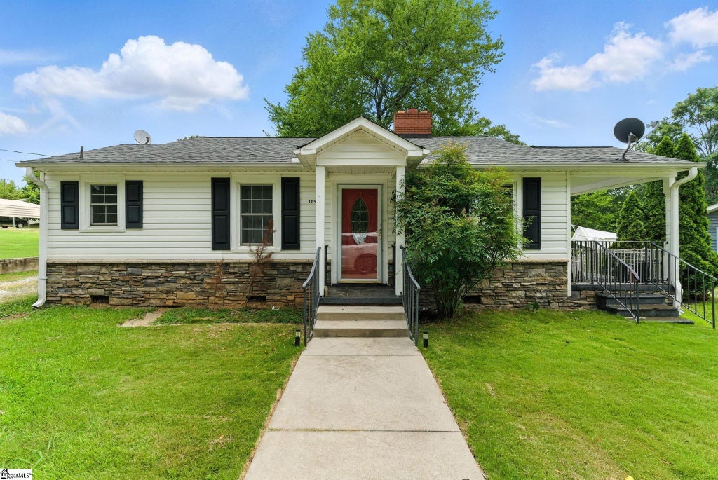 Charming bungalow-style home located within the city limits of Greer, just minutes from Greer’s revitalized downtown, Walmart, Target, and a variety of shopping, dining, and entertainment options. Conveniently positioned between Greenville and Spartanburg, this home offers easy access to both cities, each less than 30 minutes away from the downtown areas. This updated 2-bedroom, 1-bath home features 944 square feet of well-designed living space. Highlights include an open floor plan, soaring 12-foot vaulted ceilings, and a masonry wood-burning fireplace as a beautiful focal point. The kitchen and bathroom are both upgraded with granite countertops, and the home includes a stylish kitchen backsplash, updated flooring, and modern finishes throughout. Enjoy outdoor living with three covered entry points, ideal for relaxing or entertaining. The home sits on a large, level lot with no HOA restrictions, offering flexibility and space to grow. Ideal for first-time buyers, downsizers, or investors, this move-in-ready home combines character, updates, and a prime location.