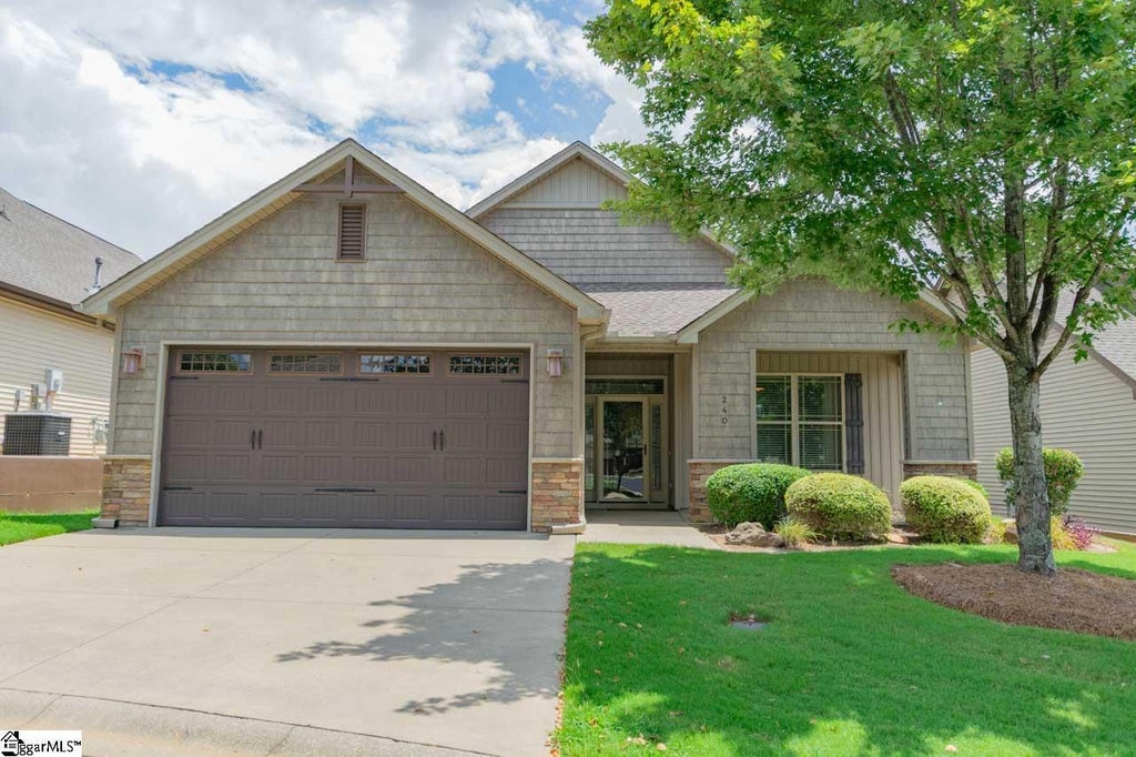 Enjoy the ultimate low-maintenance living in this beautiful craftsman style one level. Situated in Bluestone Cottages, this three bedroom two bath home features an open floorplan, greatroom with built-in bookshelves, kitchen with granite countertops and a charming screened porch. The owner's suite features a separate shower, garden tub and walk-in closet. Conveniently located near Wade Hampton Blvd. shopping, Taylors and Greer.