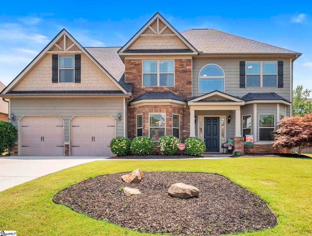 OPEN HOUSE! Saturday 10/4/25 FROM 1:00 pm-3:00 pm Zoned for GREAT schools, Close to EVERYTHING...Beautifully maintained, Turn Key ready home! Spacious 5-Bedroom Home in the Riverside School District – Greenville County Schools with Spartanburg County Taxes! Centrally located just 5minutes from 85, and 10 minutes from Pelham Road shopping, Five Forks, GSP, BMW and zoned for award-winning Riverside schools! Welcome to this beautifully maintained two-story traditional craftsman-style home, ideally located in the highly sought-after Riverside School District. Enjoy all the benefits of top-rated Greenville County schools while taking advantage of the lower property taxes in Spartanburg County—a rare and valuable combination! Recent major updates include a brand-new roof and new furnace, giving you peace of mind and long-term value. Step into the impressive two-story foyer and immediately notice the thoughtful architectural details, including crown molding, arched doorways, and elegant wall accents. The formal dining room, complete with a coffered ceiling, is perfect for hosting holidays and special occasions. The chef’s kitchen is a dream come true, featuring a gas range, granite countertops, pendant lighting, stainless steel appliances, and a spacious breakfast area. The adjacent family room offers a cozy yet stylish atmosphere with a wood-burning fireplace equipped with installed gas logs for added convenience. With the exception of the first-floor bedroom and full bath, the main level boasts beautiful hardwood flooring throughout, complemented by abundant recessed lighting. The hardwood staircase with wrought iron spindles leads to the second floor, where you’ll find a generously sized master suite with a sitting area, vaulted ceiling, two walk-in closets, a garden tub, dual sinks, and a separate tiled shower with dual shower heads. Outdoor living is just as inviting, with a covered patio, built-in grill area, fenced backyard, and a full-yard irrigation system to keep your lawn looking its best. This home has everything!—space, style, comfort, and an unbeatable location. Don’t miss your chance to call this one home!