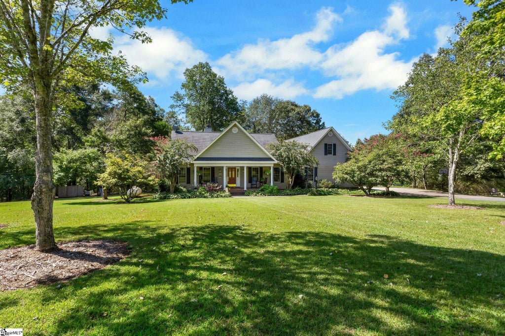 This home can't be seen from the road—an 800-foot paved driveway winds back to nearly two acres of peace and privacy, where a Don Gardner–designed home, fenced, saltwater pool, and gardens create a retreat you don’t often find at this price point in the Upstate. The home itself is designed for easy living, with hardwood floors throughout the main level, vaulted living space, and oversized pantry storage in the kitchen. The main level includes three bedrooms, while upstairs a large fourth bedroom (or bonus) with an oversized closet. Walk-in unfinished attic space is there if the new owner wanted to add a bath, kitchenette, or other living quarters. Both the covered front and back porches are fitted with overhead fans, extending the living space outdoors. Off the back of the home, a deck entrance was added and opens to provide easy access to the saltwater pool—complete with winterization cover, pool robotic pool vacuum, and a lifetime guarantee on the level concrete (and front sidewalk). Underneath the home, walk-in storage space keeps pool, yard, and gardening equipment neat and out of sight. The oversized garage goes beyond two car spots, with extra storage and a built-in workbench. A custom stick-built chicken house with enclosed run sits alongside plantings chosen by the owner, a master gardener. On the property you’ll find a muscadine grape arbor, blueberry bushes, an asparagus bed, and a young pear tree, along with unique plants that set this property apart. A whole-house Generac generator, installed in 2022, provides peace of mind. Located minutes from Travelers Rest, Greenville, and Greer, and just 25 minutes to GSP International Airport, this private setting is balanced by convenience. The new Greer Preparatory Academy is under construction nearby, serving as the feeder school to Greer Middle College Charter High School. Opportunities like this don’t come along often—a beautifully designed home with a pool, privacy, and acreage, all in a location that keeps you connected to everything the Upstate has to offer.