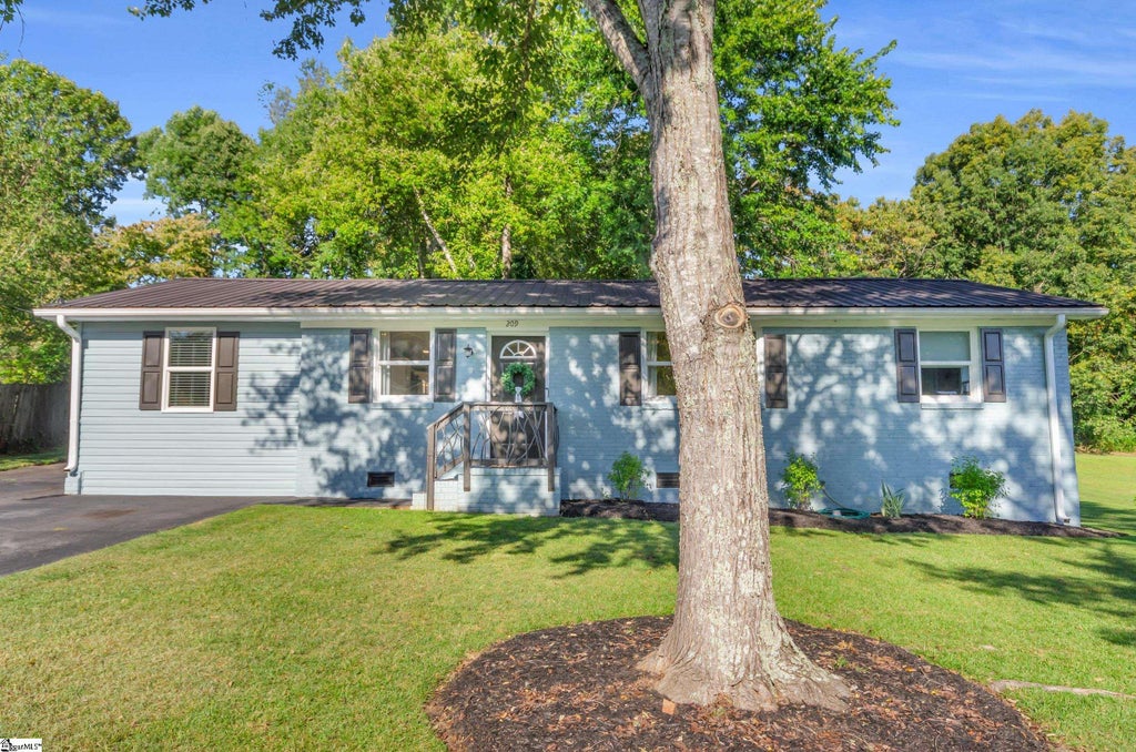 Welcome home to this beautifully updated 3-bedroom, 2-bath ranch just minutes from downtown Travelers Rest and the beloved Swamp Rabbit Trail. Every major system has been upgraded for peace of mind and efficiency: a new HVAC (2023), roof (2016), and new insulation (2024) for energy savings year-round. In addition, the electrical panel, outlets, and switches were completely updated in 2024, offering modern reliability throughout. Step inside to find modern design and elegance with LVP flooring, granite countertops, stylish lighting, and a split floorplan for added privacy. The kitchen and living spaces flow seamlessly, creating a welcoming atmosphere for both everyday living and entertaining. Also, all kitchen appliances convey to add one less thing to your plate while moving! One of the highlights of this property is the backyard naturescape. The private tree line creates a serene backdrop, perfectly complemented by a deck that ties indoor and outdoor living together. Enjoy evenings grilling on the deck, mornings tending your garden space, and added storage with the outbuilding that conveys with the sale. If you’re searching for a move-in-ready home with modern updates, a functional layout, and the perfect location close to all that Travelers Rest has to offer, this one checks every box.
